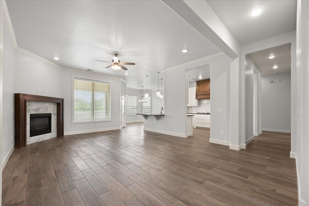 Welcome to Lone Oak Farm in the highly sought-after Deer Creek community! Ideally situated on a quiet cul-de-sac at 4317 NW 156th Place, this beautifully designed home offers an exceptional blend of comfort, style, and functionality. The inviting living room features a cozy corner fireplace and rich wood-look tile flooring that extends throughout the main living areas, creating a warm and cohesive atmosphere. The open-concept layout allows for easy flow between the living, dining, and kitchen spaces, perfect for both everyday living and entertaining. The kitchen is thoughtfully designed with a gas range, pantry, abundant cabinetry, and generous counter space, making meal preparation both efficient and enjoyable. The spacious primary suite serves as a private retreat, complete with a spa-inspired bathroom featuring a freestanding soaking tub, an extended vanity with dual sinks, and a walk-in closet that conveniently connects directly to the laundry room. The laundry room is equipped with a utility sink, adding both function and convenience to your daily routine. A dedicated study with double doors provides the ideal space for a home office, library, or flex room. Additional features include a powder bath for guests and generously sized secondary bedrooms that offer flexibility for family, guests, or hobbies. Step outside to enjoy the large covered backyard patio, perfect for outdoor dining, relaxing evenings, or hosting gatherings. The cul-de-sac location adds an extra sense of privacy. Located within the award-winning Deer Creek School District and close to shopping, dining, and major roadways, this home offers the perfect combination of peaceful neighborhood living and everyday convenience. Welcome Home!